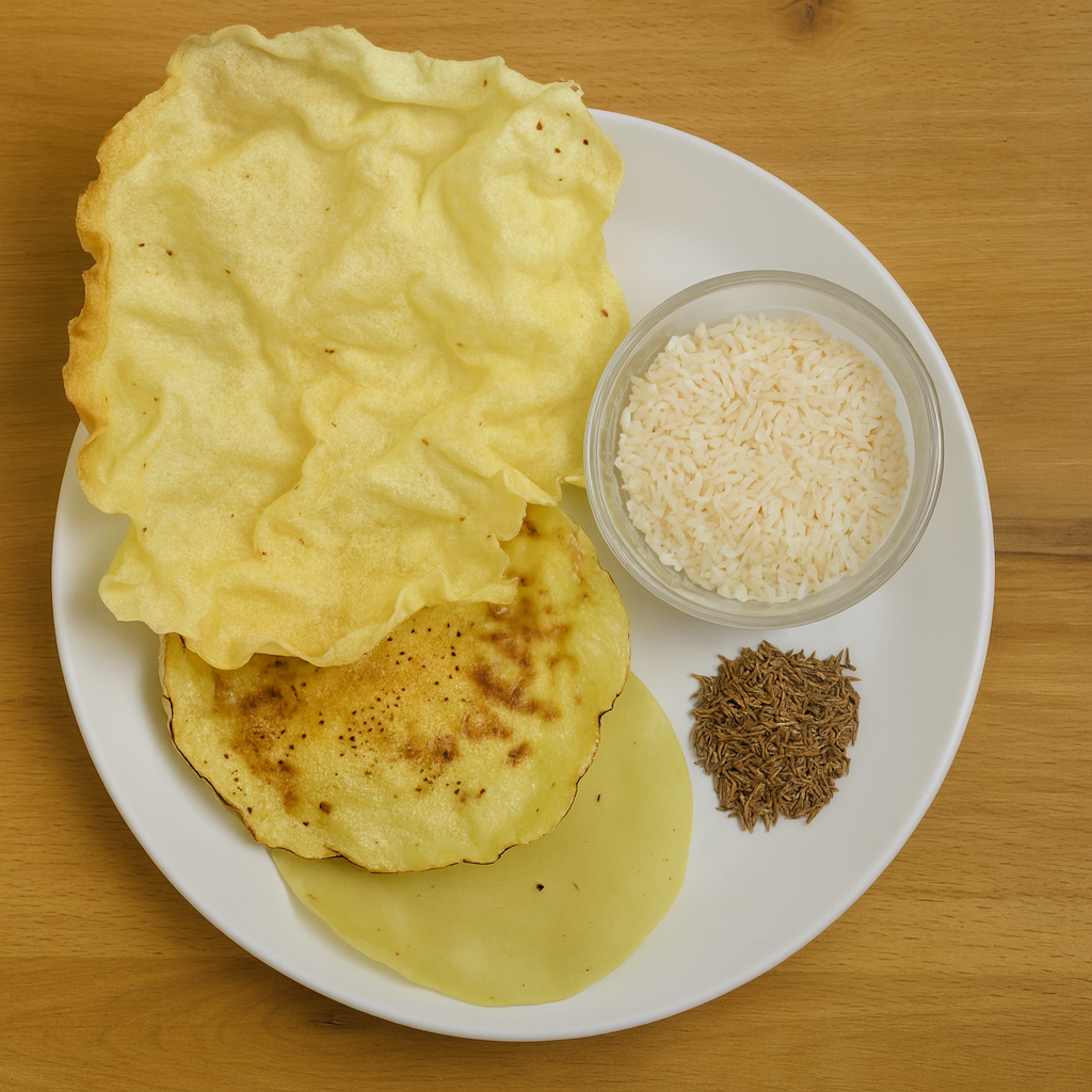 - Sabudana (Sago): Enhances crispness and makes the papad easy to digest.