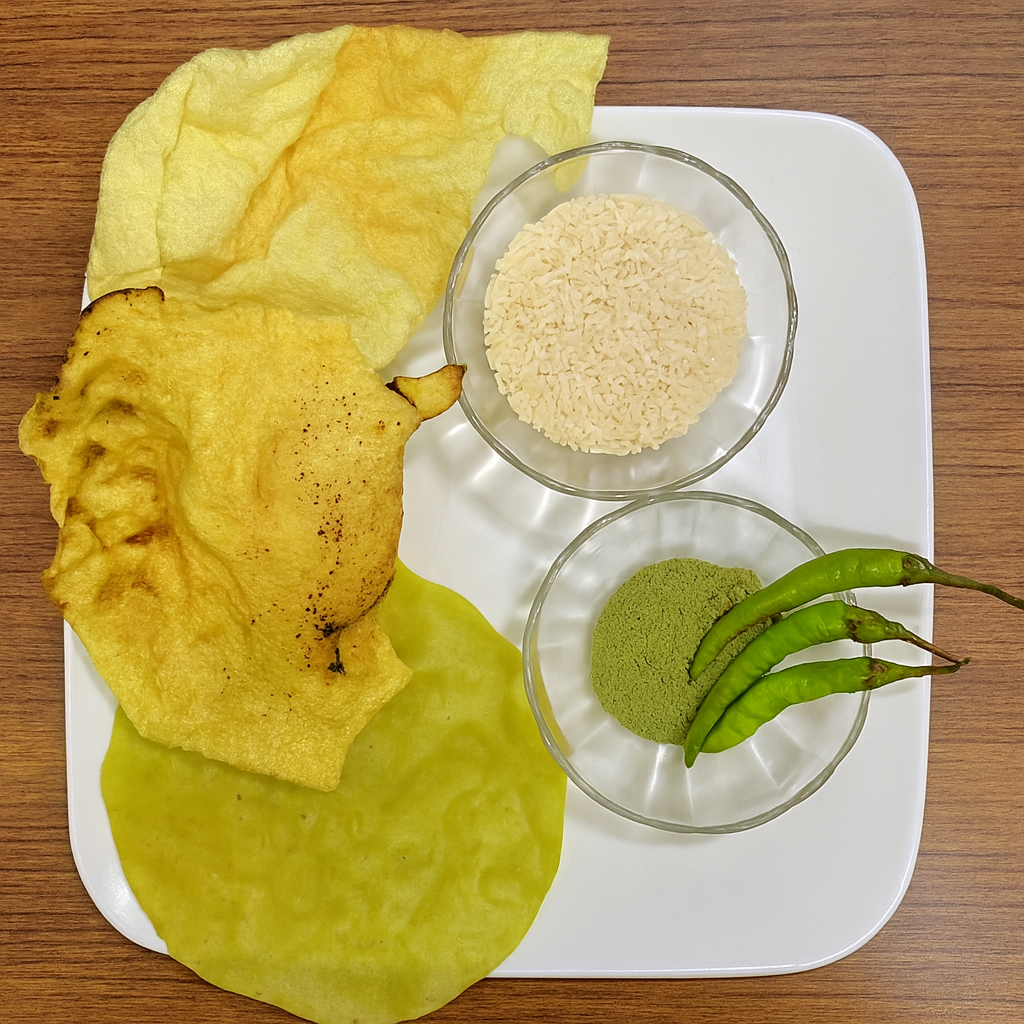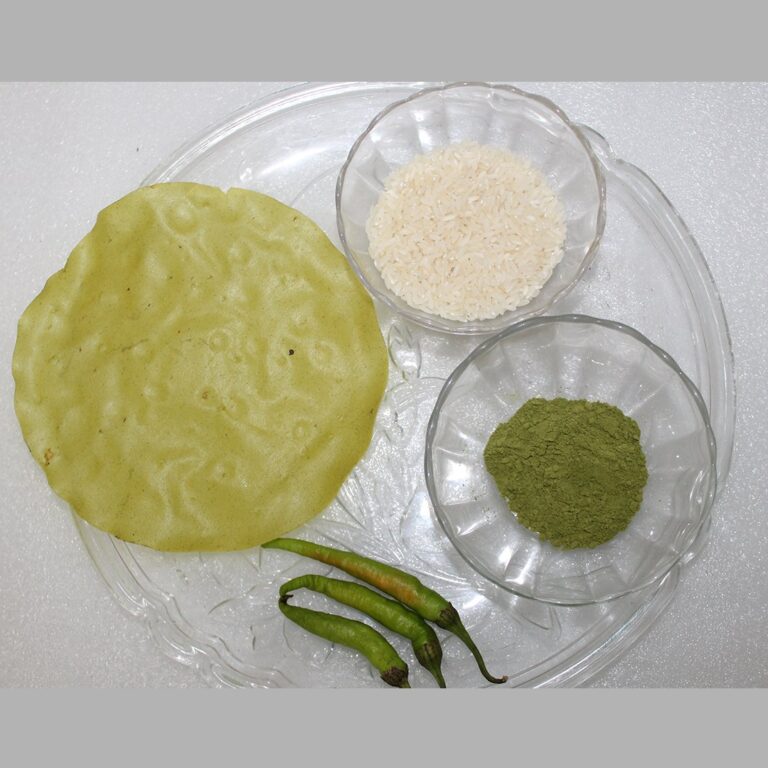 ચોખા – મોરિંગા લીફ પાઉડર – ગ્રીન ચિલી ખીચીયા પાપડ (70pcs) – સ્વાદિષ્ટ આરોગ્યનો કરકરો કટકો!